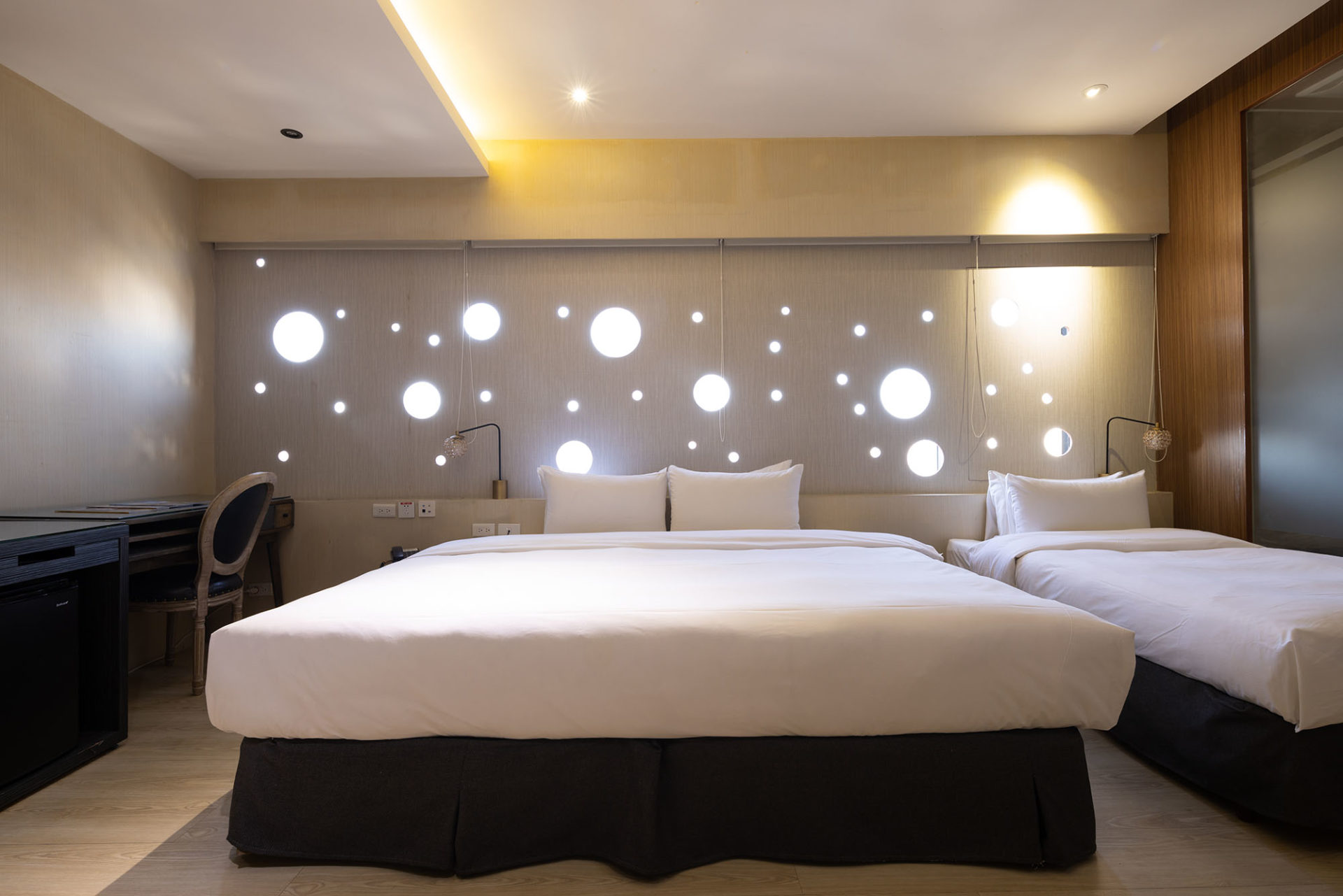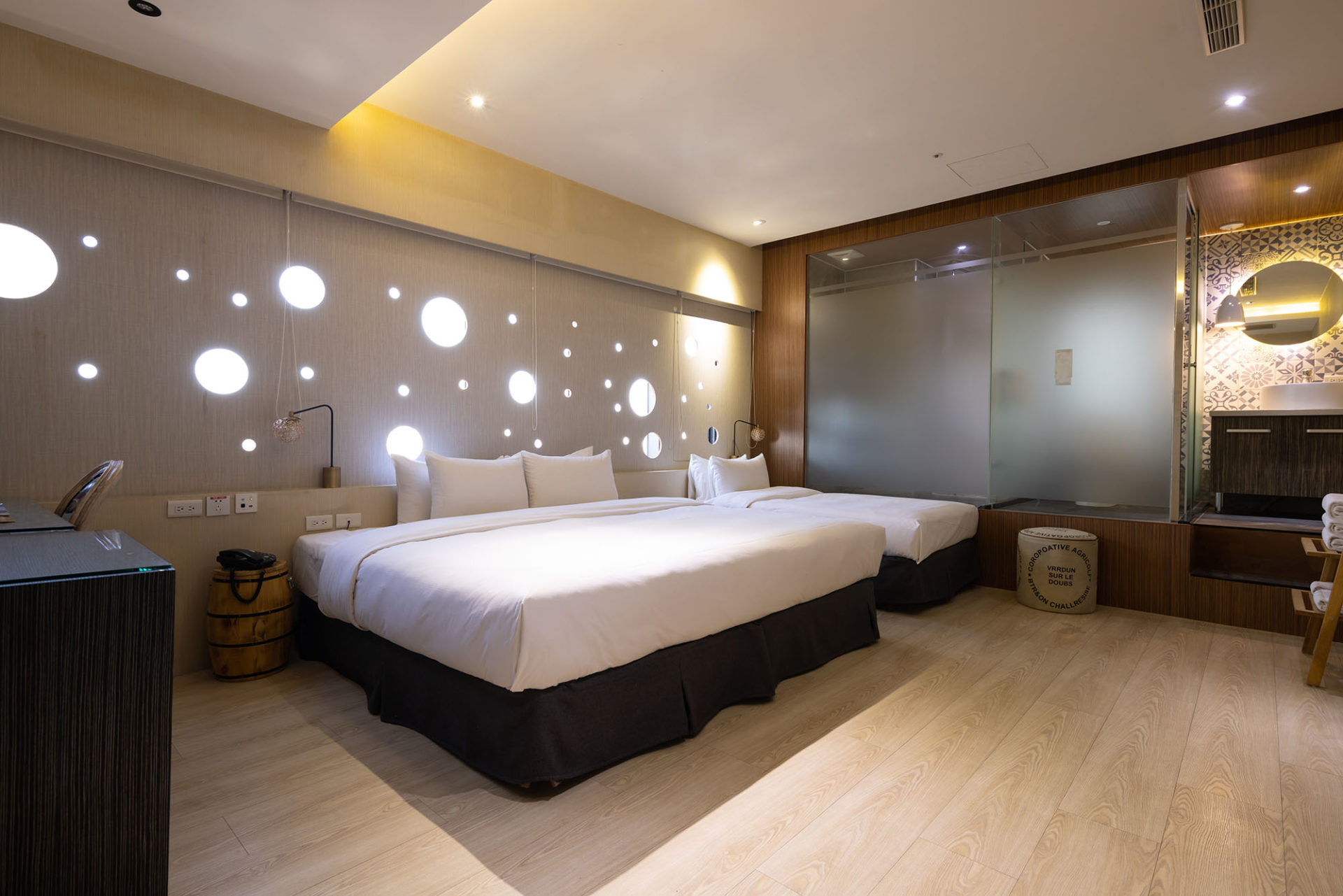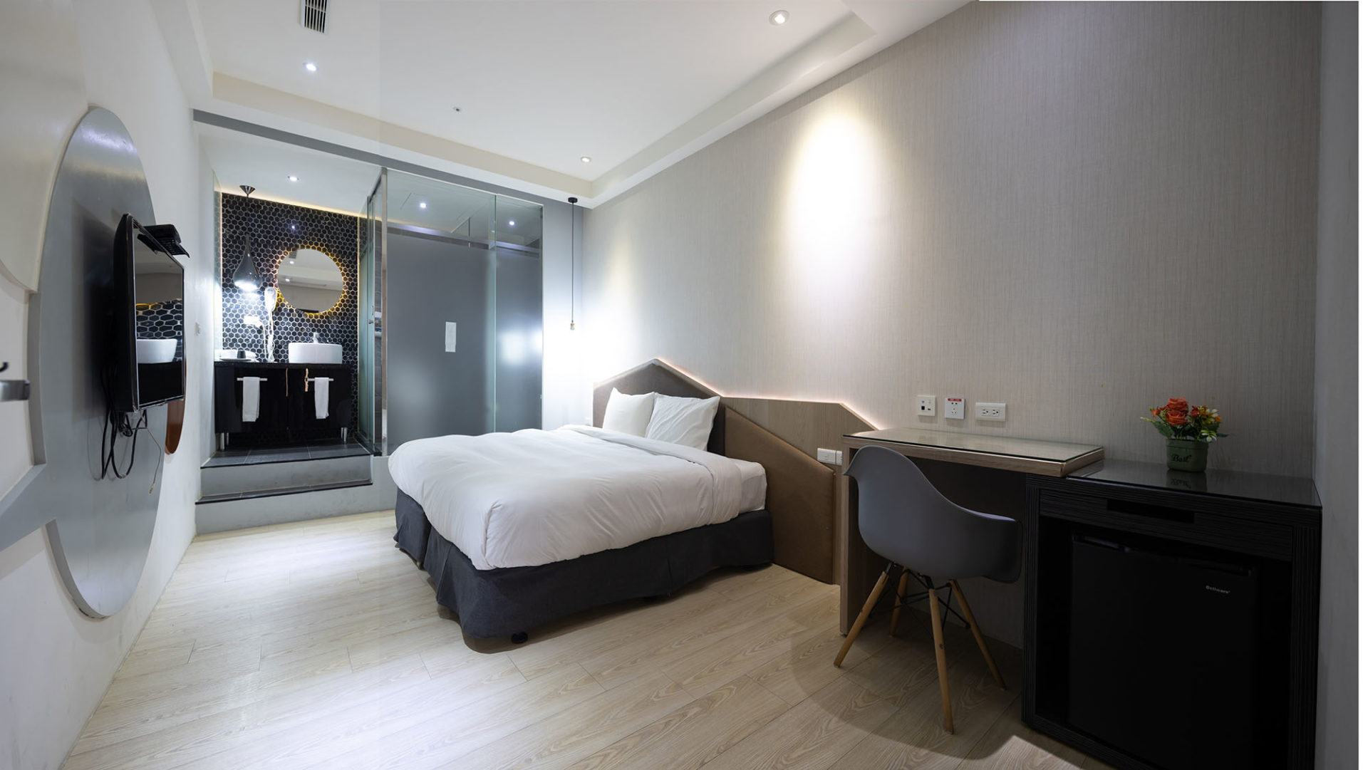 我們整體採用電影院風格設計,搭配房內寬敞明亮的空間,讓旅人感受當時懷舊的電影院情懷,又能好好放鬆。如果想規劃一趟城市度假輕旅行,來凝萃文旅就對了;而且出行方便,想要品嚐周遭台中美食完全不成問題。