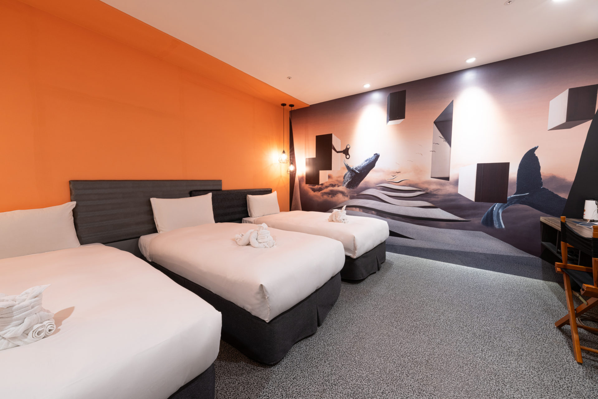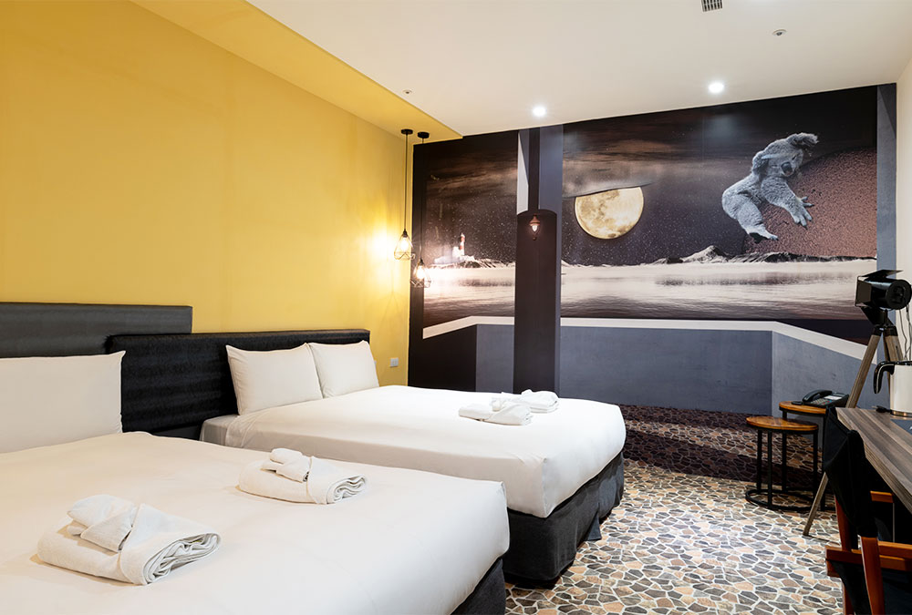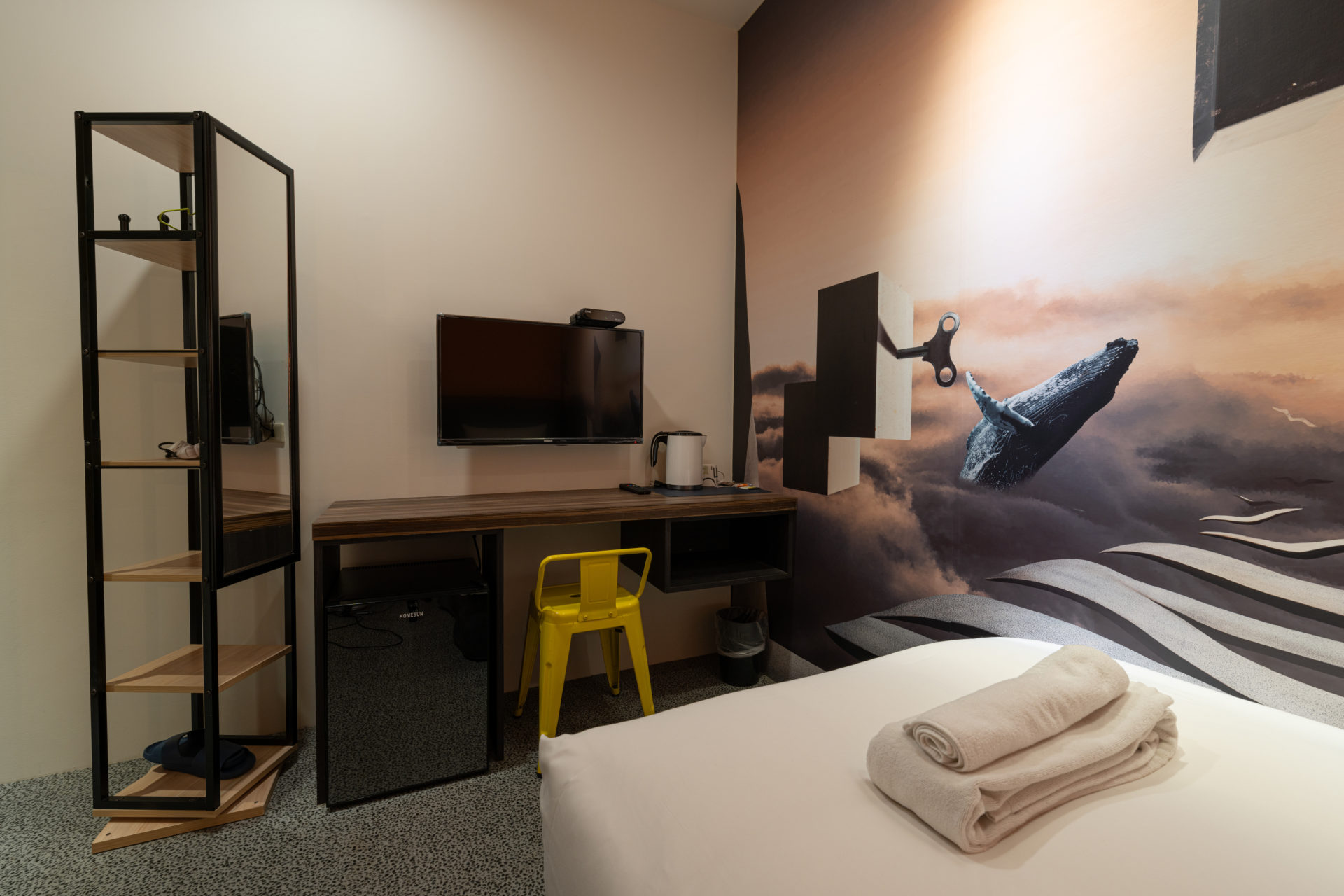我們整體採用電影院風格設計,搭配房內寬敞明亮的空間,讓旅人感受當時懷舊的電影院情懷,又能好好放鬆。如果想規劃一趟城市度假輕旅行,來凝萃文旅就對了;而且出行方便,想要品嚐周遭台中美食完全不成問題。